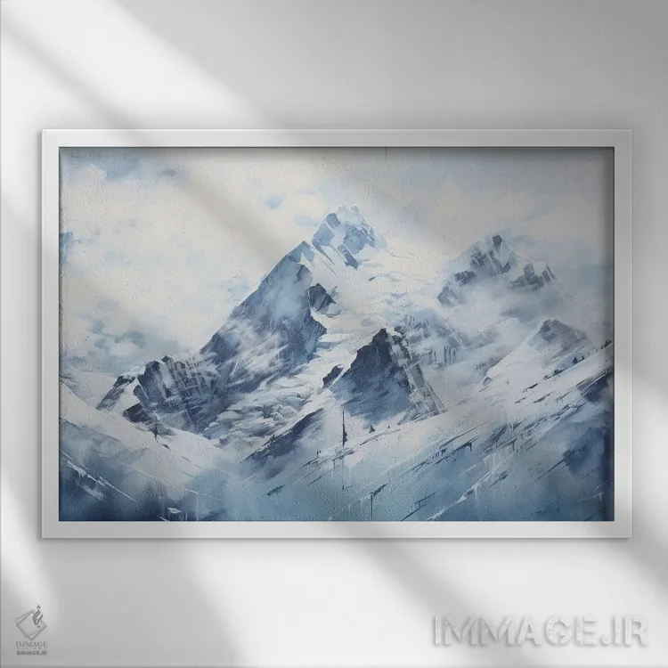 براساس پالت سرد اثر، قاب سفید مات (فریم باریک) پیشنهاد اول است و نقرهای برسخورده (متالیک) مکمل. برای سفارشهای پروژهای با ابعاد و قابهای اختصاصی با ایماژ در تماس باشید.