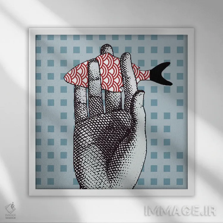 تابلو ماهی روی دست اثر آرت میرانو - نمای قاب‌دار سفید