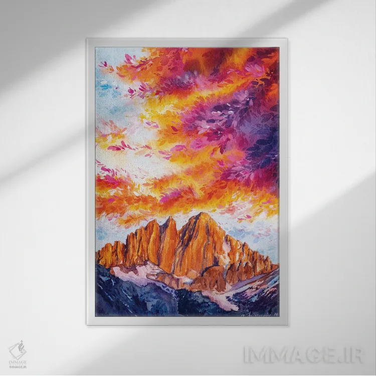 براساس پالت ترکیبی اثر، قاب تیک گرم (چوبی) پیشنهاد اول است و مشکی مات (فریم متوسط) مکمل. برای سفارشهای پروژهای با ابعاد و قابهای اختصاصی با ایماژ در تماس باشید.