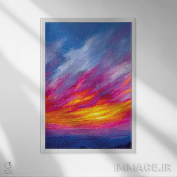 براساس پالت ترکیبی اثر، قاب تیک گرم (چوبی) پیشنهاد اول است و مشکی مات (فریم متوسط) مکمل. برای سفارشهای پروژهای با ابعاد و قابهای اختصاصی با ایماژ در تماس باشید.