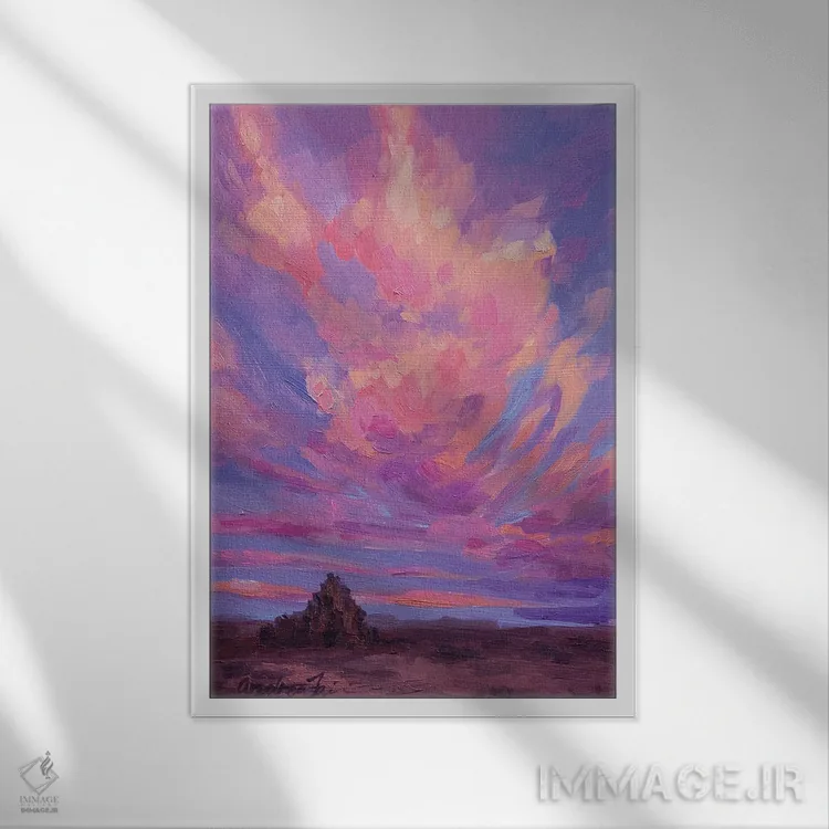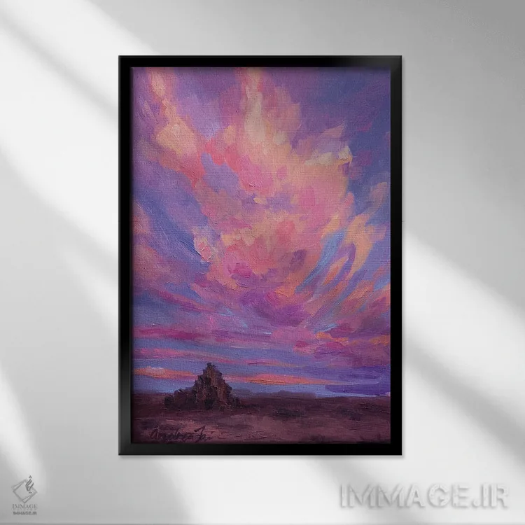 براساس پالت ترکیبی اثر، قاب تیک گرم (چوبی) پیشنهاد اول است و مشکی مات (فریم متوسط) مکمل. برای سفارشهای پروژهای با ابعاد و قابهای اختصاصی با ایماژ در تماس باشید.