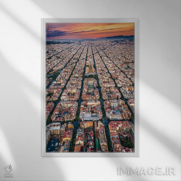 تابلو غروب شهر بارسلونا اسپانیا از بالا (الگوی شبکهای شهری) اثر الکس جی پرز