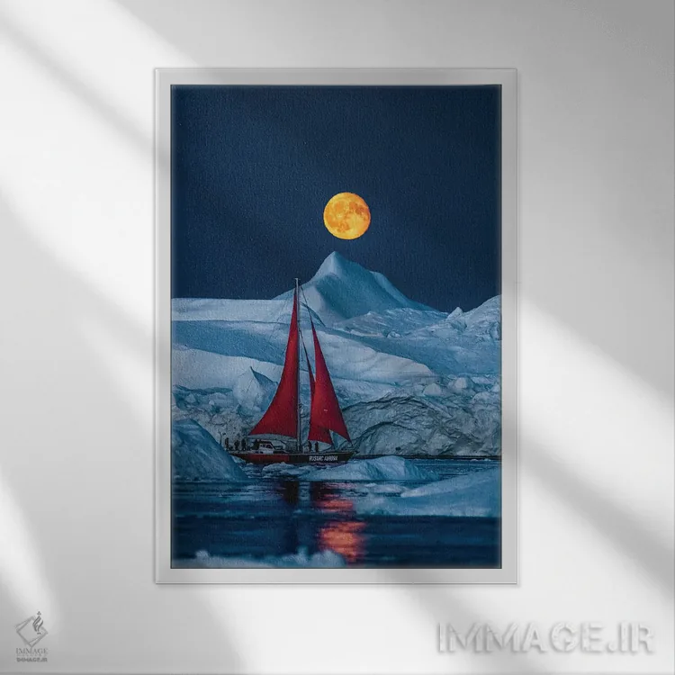 اگر اهل «کم اما درست» هستید، «قایق بادبانی قرمز کنار کوه یخی گرینلند با ماه کامل» اثرِ «الکس جی پرز» به چیدمان، عمق و وقار میدهد؛ برای دیوار بالای کنسول یا شومینه پیشنهاد میشود. یک انتخاب خوشسلیقه است که با گذر زمان هم تازه میماند.