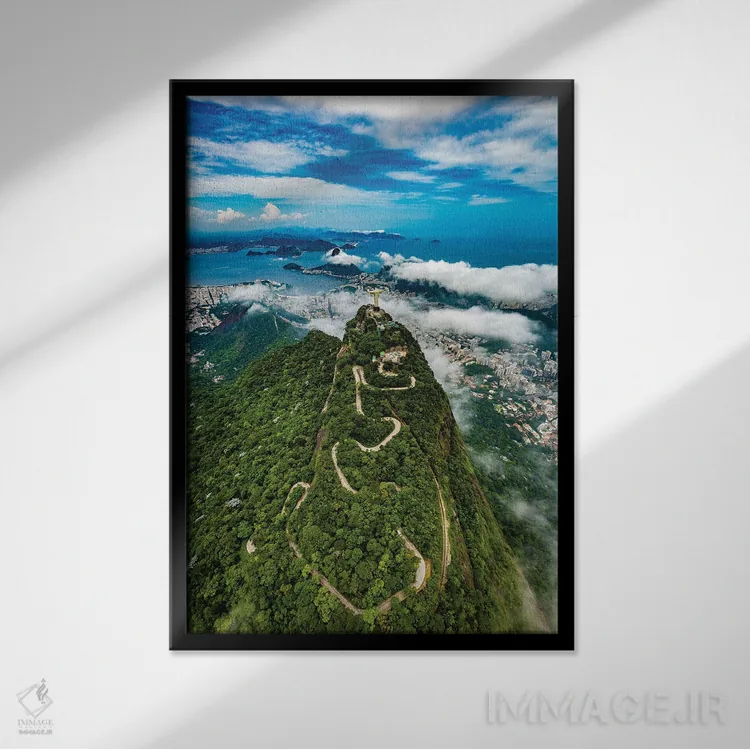 تابلو مجسمه مسیح منجی مشرف به ریو دو ژانیرو، برزیل (۱) اثر الکس جی پرز - نمای قاب‌دار مشکی