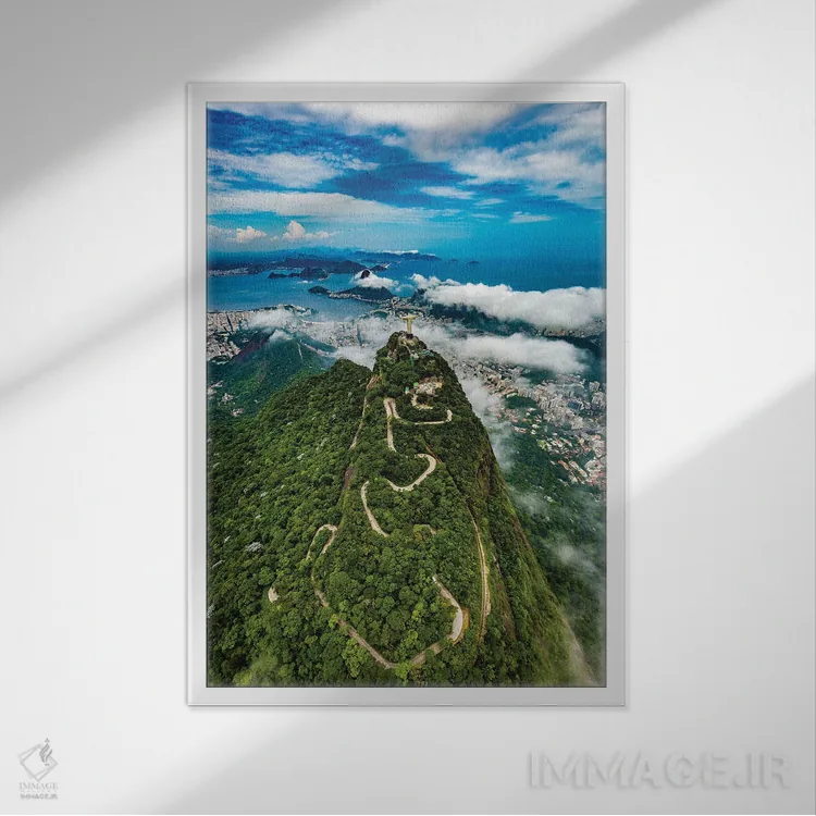تابلو مجسمه مسیح منجی مشرف به ریو دو ژانیرو، برزیل (۱) اثر الکس جی پرز - نمای قاب‌دار سفید