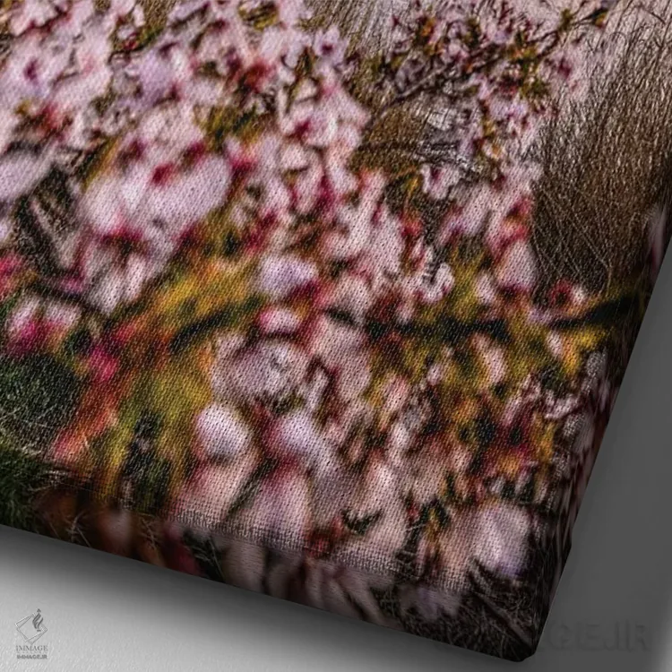 تابلو Lake Kawaguchi II,منظره کوه فوجی از میان درختان شکوفه گیلاس کنار دریاچه کاواگوچی (۲) اثر الکس جی پرز - نمای نزدیک بافت بوم