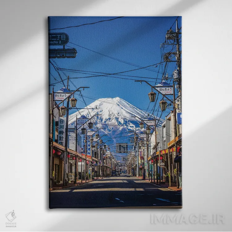 تابلو Japan I,منظره کوه فوجی از میان خیابان‌های فوجینومیا، ژاپن (۱) اثر الکس جی پرز - نمای نزدیک بافت بوم