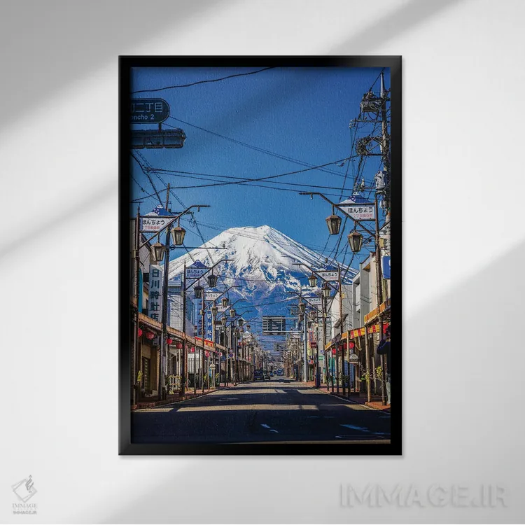 تابلو Japan I,منظره کوه فوجی از میان خیابان‌های فوجینومیا، ژاپن (۱) اثر الکس جی پرز - نمای قاب‌دار مشکی