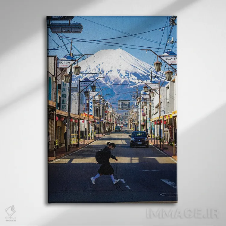 تابلو Japan II,منظره کوه فوجی از میان خیابان‌های فوجینومیا، ژاپن (۲) اثر الکس جی پرز - نمای روبه‌رو روی دیوار