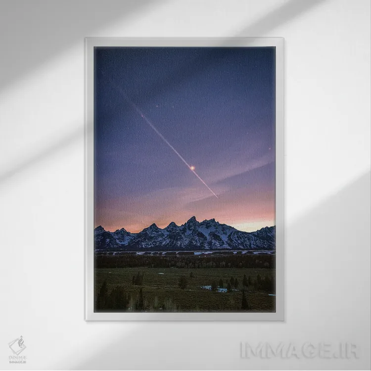 وقتی چیدمان را با دقت میچینید، «کوههای بزرگ تیتون، ساعت آبی (۱)» اثرِ «الکس جی پرز» تضادهای رنگی را خوشقوارهتر میکند؛ برای فضاهایی با نور طبیعی پیشنهاد میشود. برای هدیه دادن هم انتخابی محترمانه و امن است.
