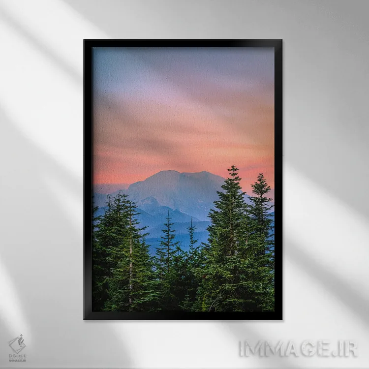 تابلو نمای غروب کوه رینیر اثر الکس جی پرز - نمای قاب‌دار مشکی
