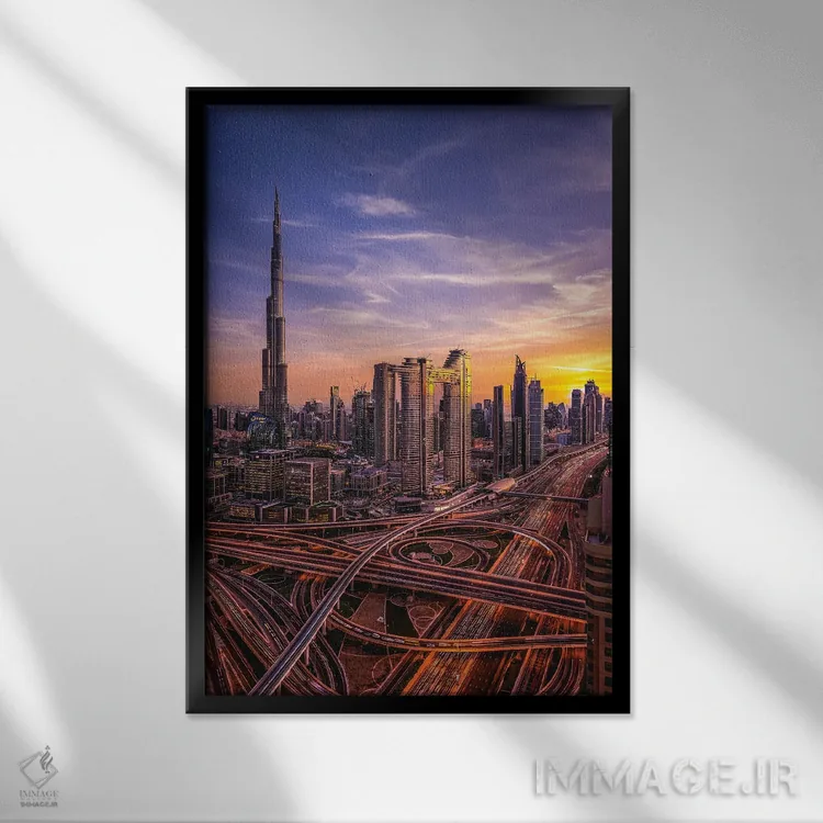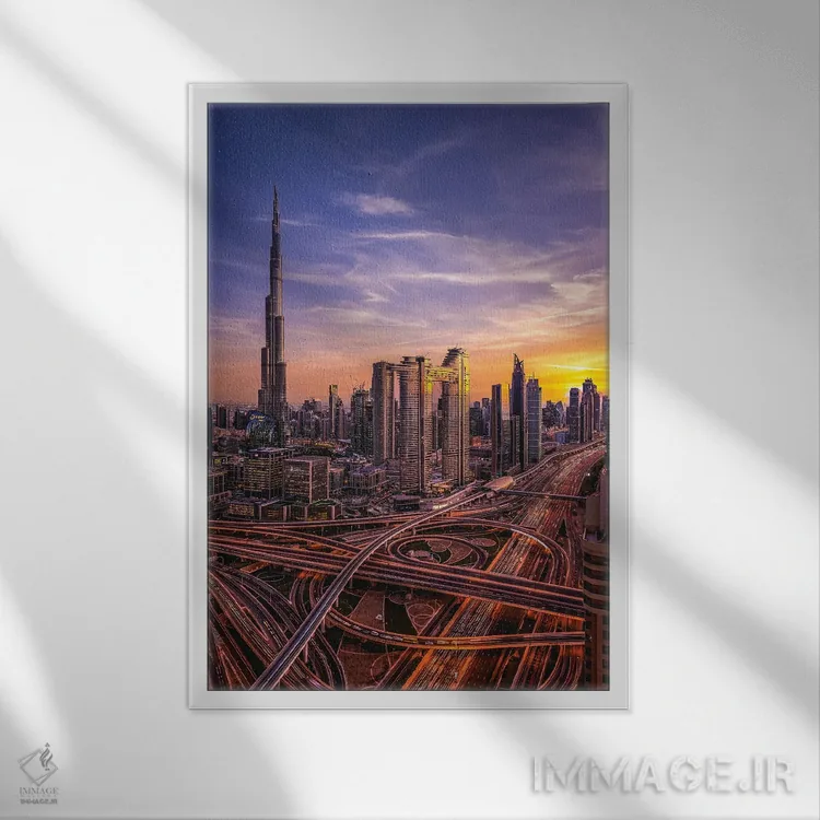 تابلو نمای شهری برج خلیفه دبی در غروب آفتاب I اثر الکس جی پرز