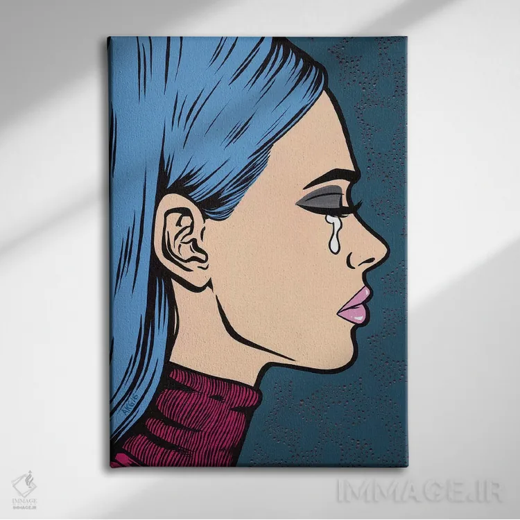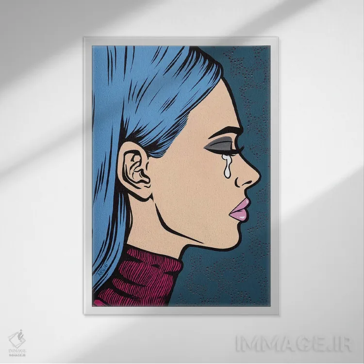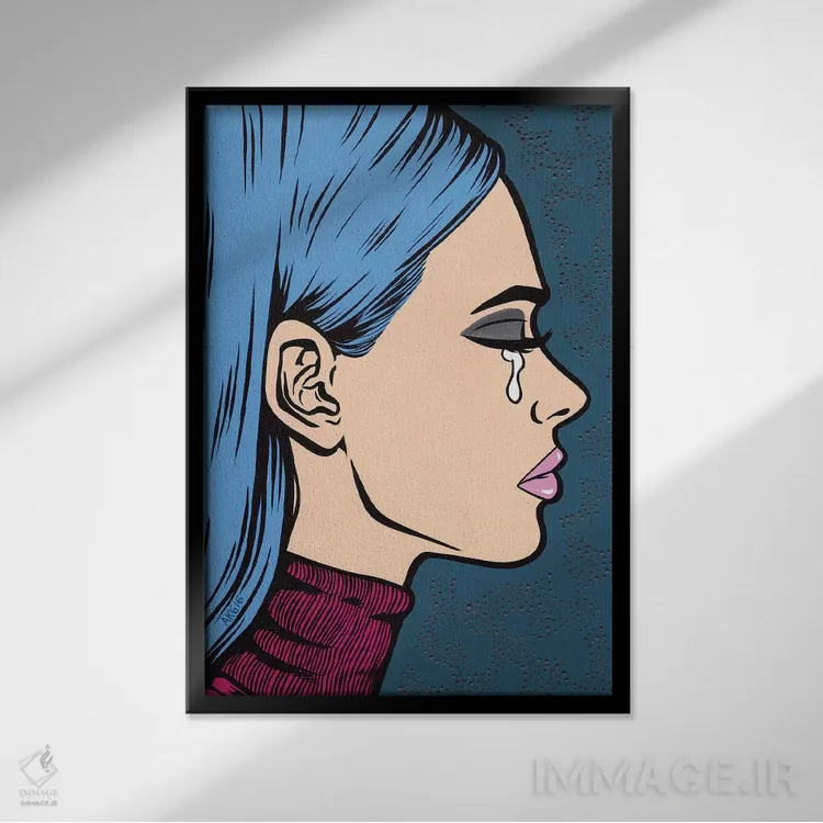 این اثر با عنوان «دختر غمگین با یقه اسکی آبی» اثرِ «آلیسون گاتچل»، برای دیوارهای شاخص و چیدمانهای سطحبالا مناسب است.