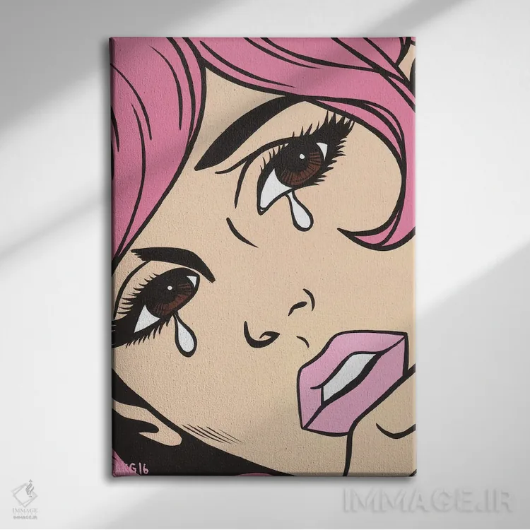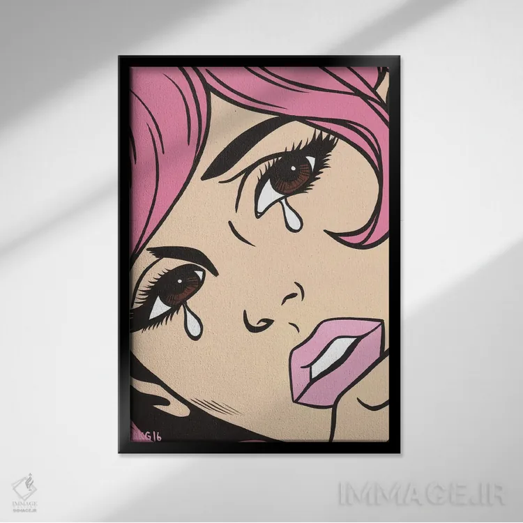 تابلو دختر کمیک گریان با موهای صورتی اثر آلیسون گاتچل