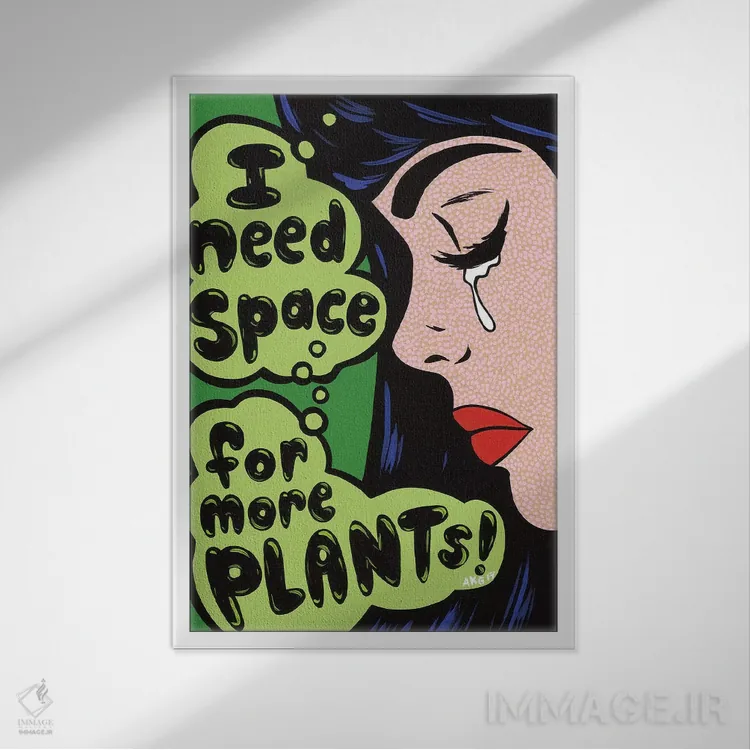 تابلو دختر کمیک با پیام "گیاه بیشتر!" اثر آلیسون گاتچل