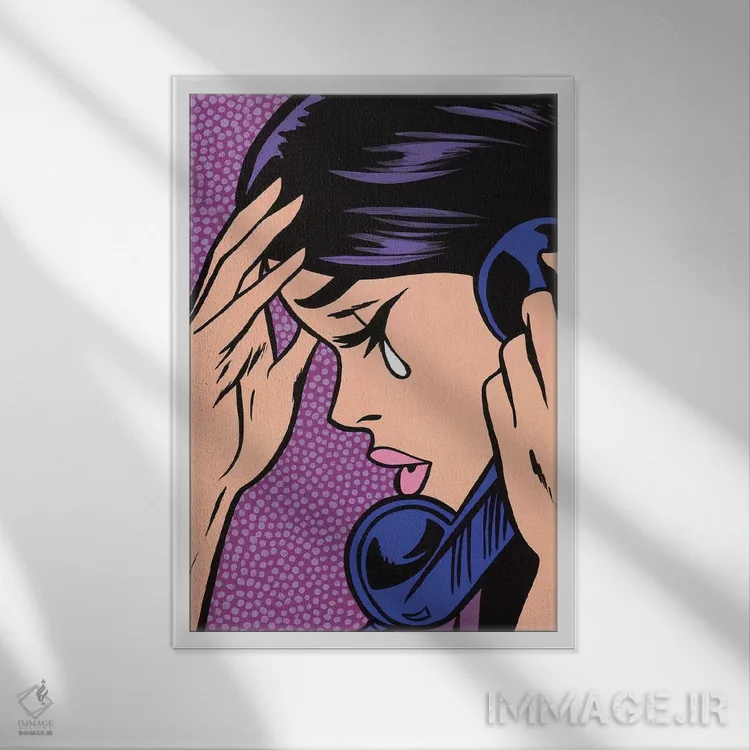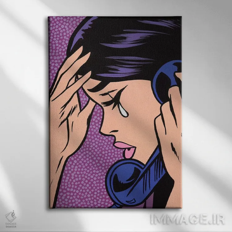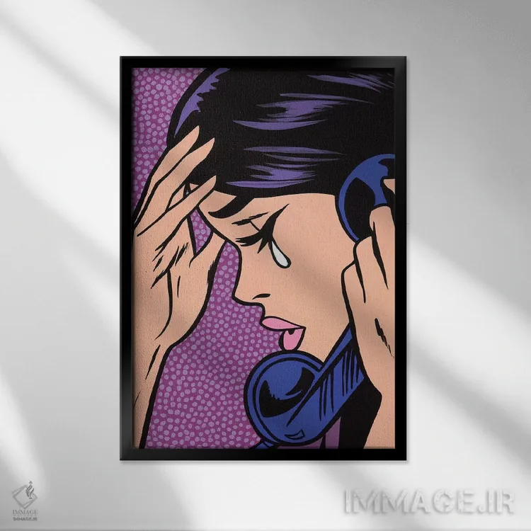 تابلو دختر کمیک گریان با تلفن اثر آلیسون گاتچل