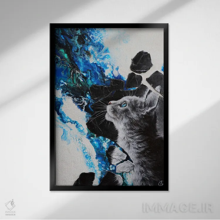 براساس پالت سرد اثر، قاب سفید مات (فریم باریک) پیشنهاد اول است و نقرهای برسخورده (متالیک) مکمل. برای سفارشهای پروژهای با ابعاد و قابهای اختصاصی با ایماژ در تماس باشید.