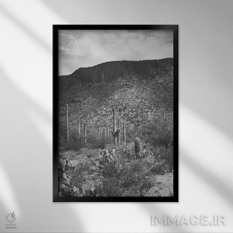 تابلو ساگوارو (نوعی کاکتوس آمریکایی مشهور) اثر آن هادک - نمای قاب‌دار مشکی