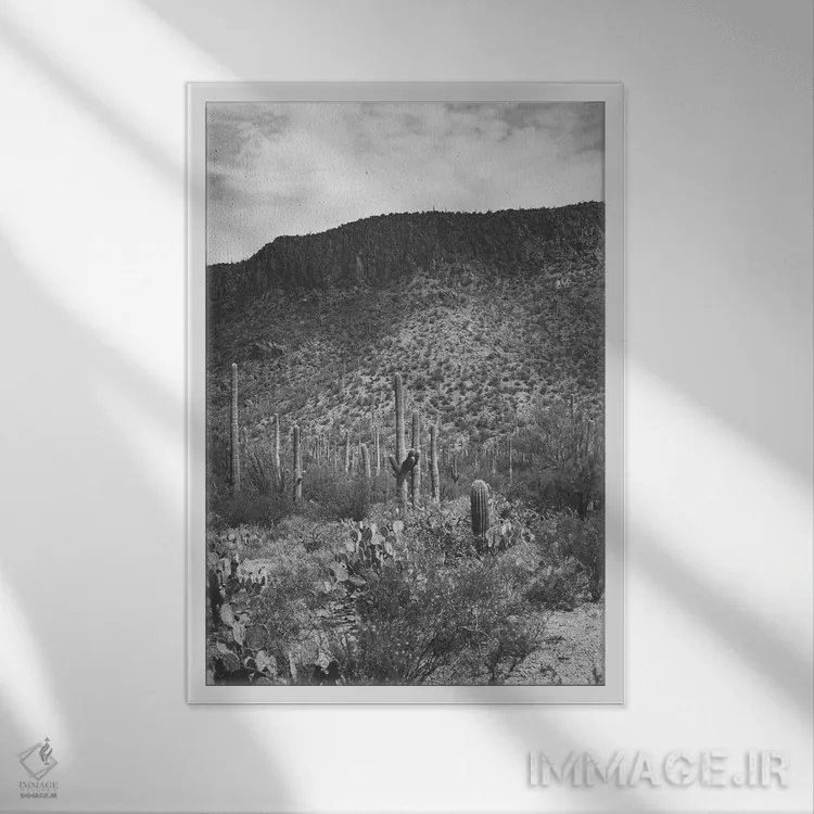تابلو ساگوارو (نوعی کاکتوس آمریکایی مشهور) اثر آن هادک - نمای قاب‌دار سفید