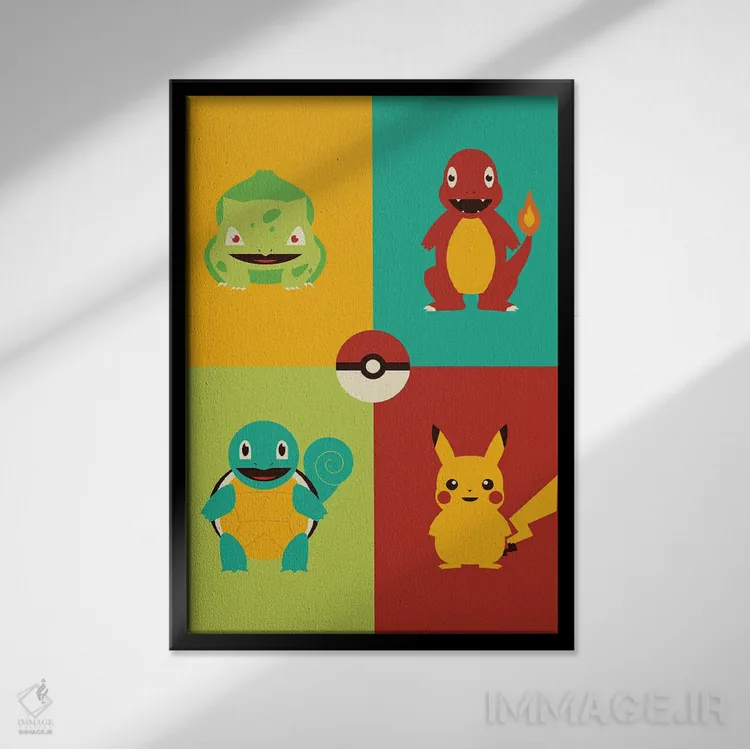 «همه را شکار کن (ارجاع به پوکمون)» اثرِ «برگر بولت» با حالوهوای این اثر، برای بالای کنسول یا کنار قابهای ساده، ترکیب چشمنوازی میسازد.