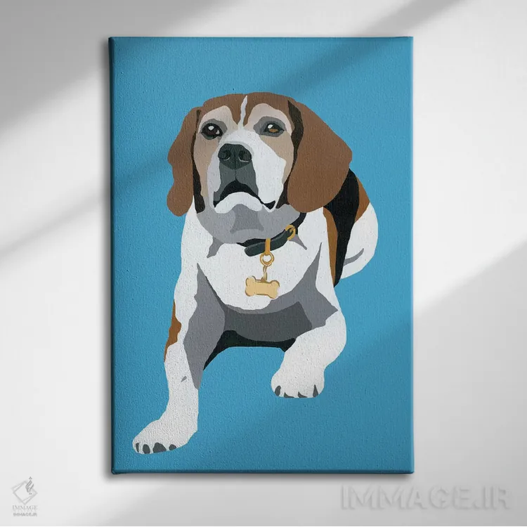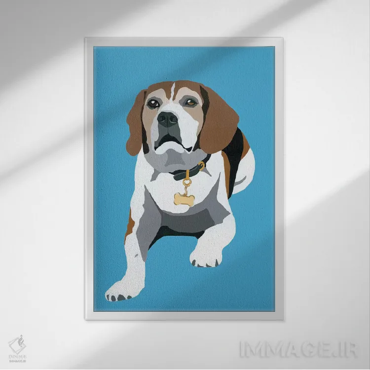 تابلو بیگل روی زمینه آبی (نوع سگ) اثر جولی احمد