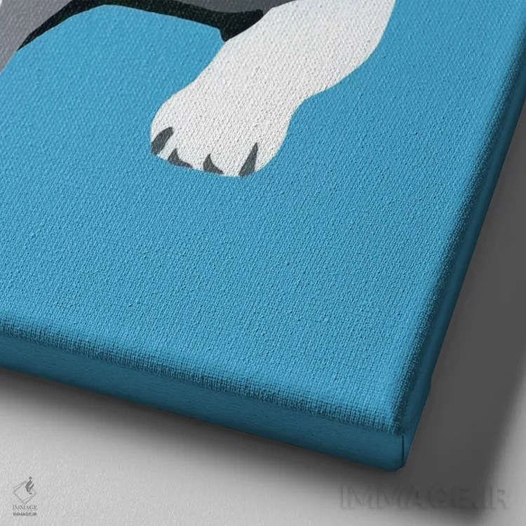 تابلو بیگل روی زمینه آبی (نوع سگ) اثر جولی احمد - نمای نزدیک بافت بوم