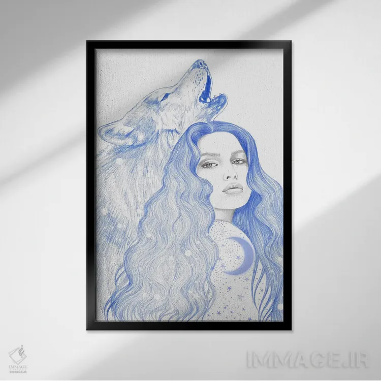 براساس پالت سرد اثر، قاب سفید مات (فریم باریک) پیشنهاد اول است و نقرهای برسخورده (متالیک) مکمل. برای سفارشهای پروژهای با ابعاد و قابهای اختصاصی با ایماژ در تماس باشید.