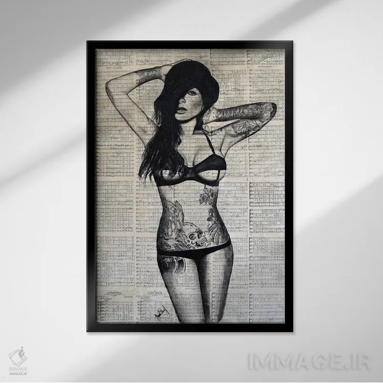 تابلو دختر خالکوبی‌شده اثر احمد شریف - نمای قاب‌دار مشکی