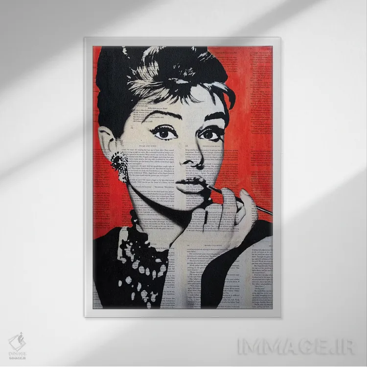 تابلو آدری هپبورن اثر احمد شریف - نمای قاب‌دار سفید