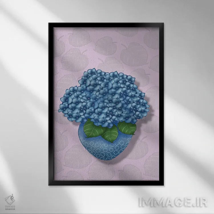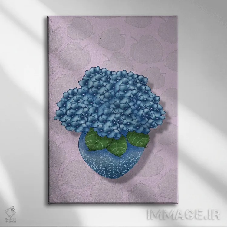 تابلو هورتانسیا در گلدان آبی اثر آن هاچینسون - نمای پرسپکتیو محصول