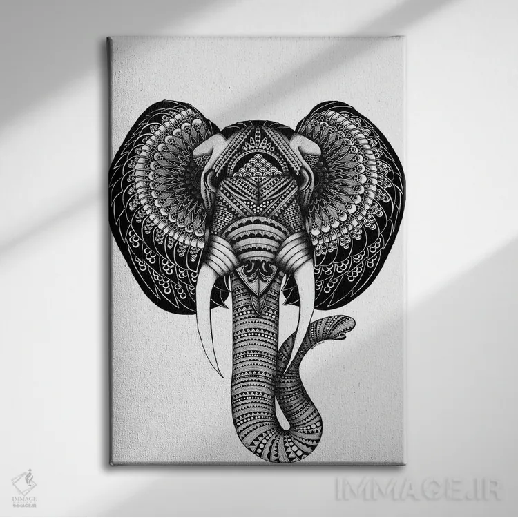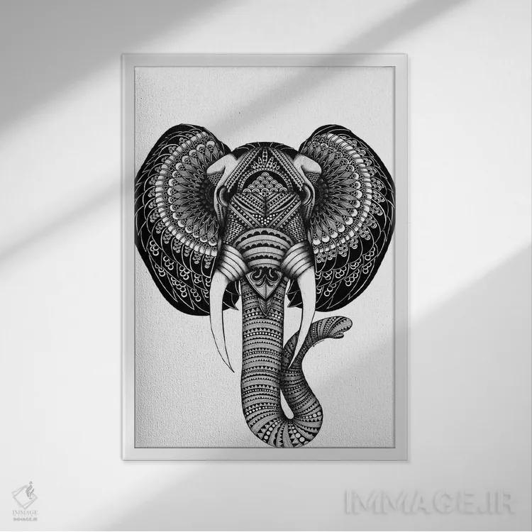 تابلو فیل "الویس" اثر آن هاچینسون - نمای قاب‌دار سفید