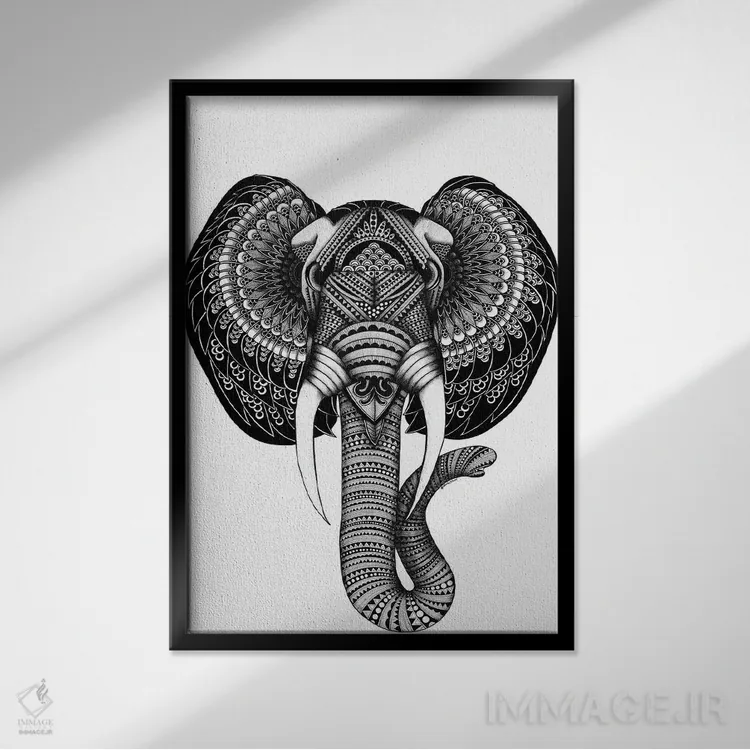 تابلو فیل "الویس" اثر آن هاچینسون - نمای قاب‌دار مشکی