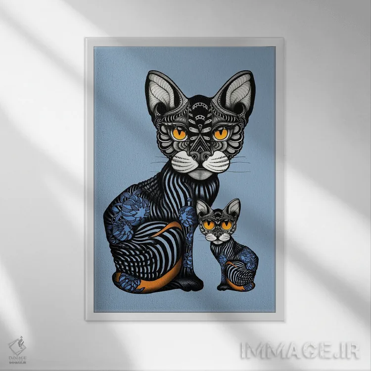 تابلو تتو کوچک و مامانش اثر آن هاچینسون - نمای قاب‌دار مشکی