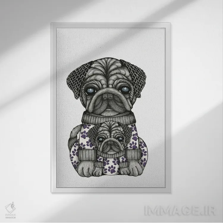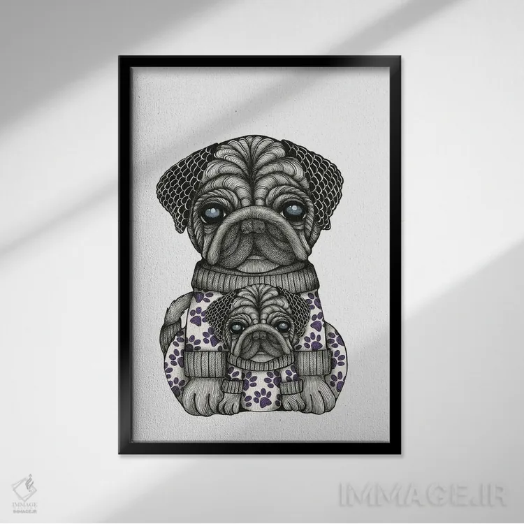 تابلو مامان پاگ (سگ) و بچهاش اثر آن هاچینسون