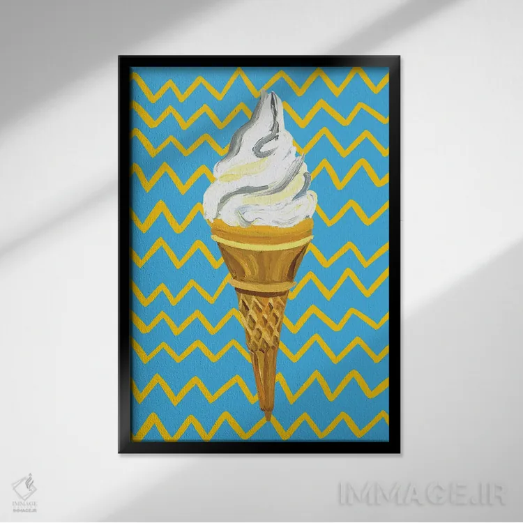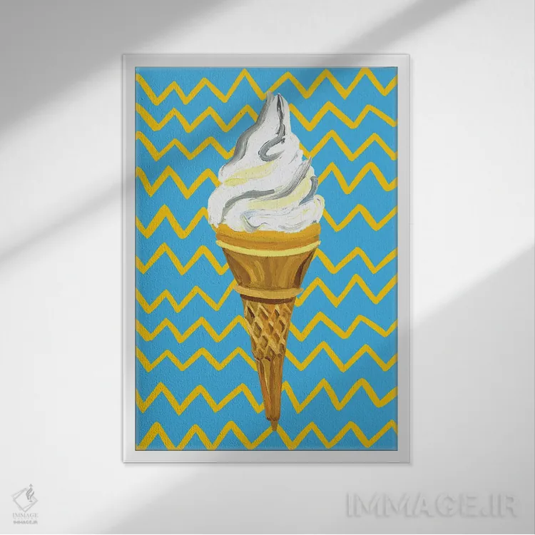 این تابلو با عنوان «بستنی روی زیگزاگ آبی» اثرِ «آلیس استراکر»، حسِ گرم و صمیمی به فضا میدهد.