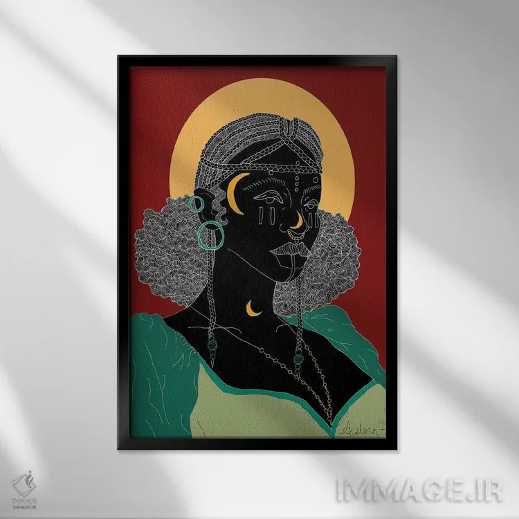 براساس پالت ترکیبی اثر، قاب تیک گرم (چوبی) پیشنهاد اول است و مشکی مات (فریم متوسط) مکمل.