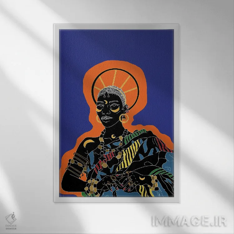براساس پالت ترکیبی اثر، قاب تیک گرم (چوبی) پیشنهاد اول است و مشکی مات (فریم متوسط) مکمل. برای سفارشهای پروژهای با ابعاد و قابهای اختصاصی با ایماژ در تماس باشید.