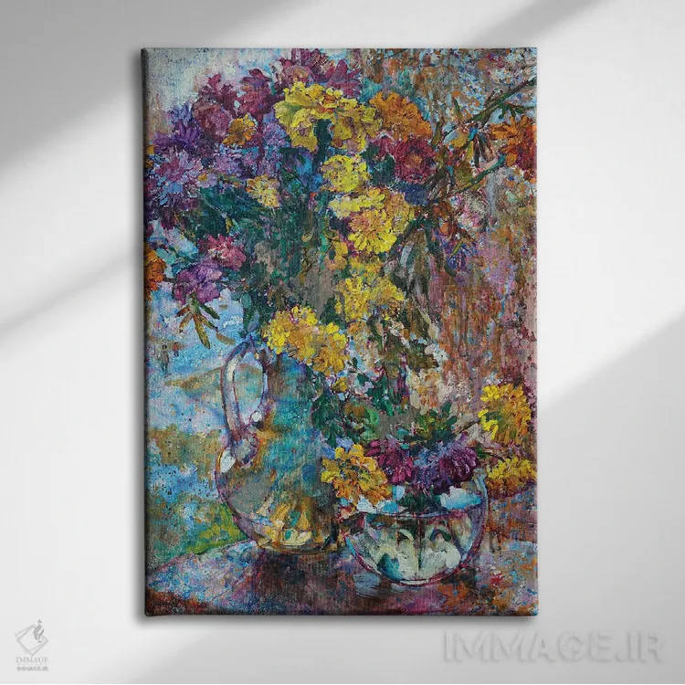تابلو دکوراتیو طبیعت بی جان با گل های پاییزی اثر اندریی کوتساچنکو