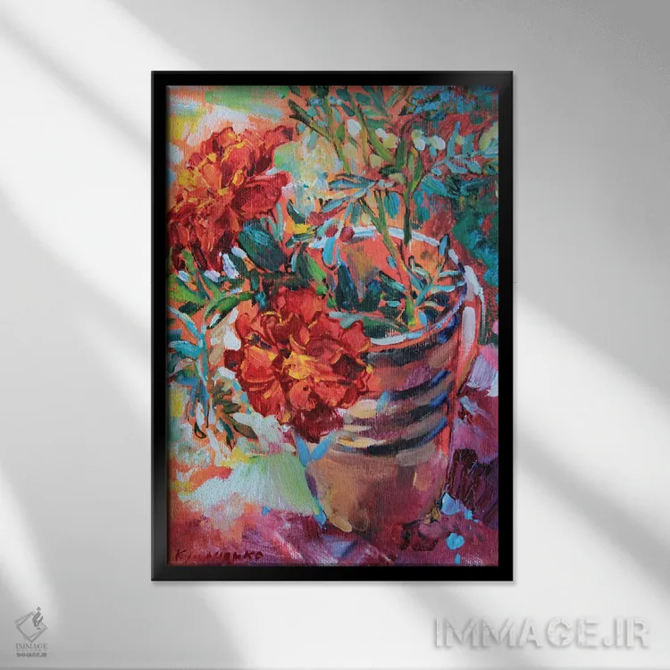 تابلو همیشه‌بهار در فنجان اثر اندریی کوتساچنکو - نمای قاب‌دار مشکی