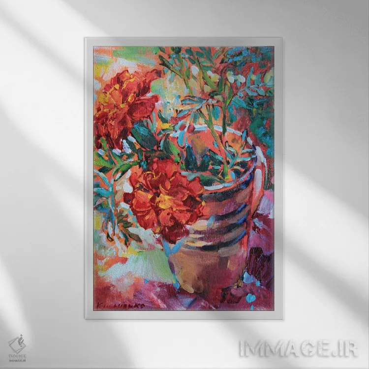 تابلو همیشه‌بهار در فنجان اثر اندریی کوتساچنکو - نمای قاب‌دار سفید