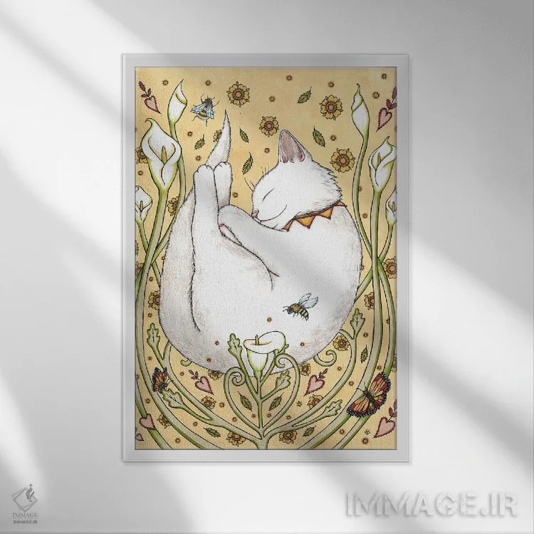 تابلو پروانه‌ها و زنبورها اثر آنیتا اینوراریتی - نمای قاب‌دار سفید