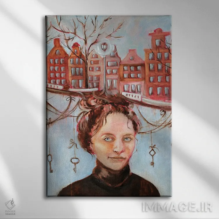 اگر میخواهید دیوار از «پسزمینه» بیرون بیاید، «کلیدهای شهر» اثرِ «الکساندرا جاگودا» جلوهٔ اتاق را یک پله حرفهایتر میکند؛ برای دکورهای کلاسیک با چوب و پارچه پیشنهاد میشود. حضورش روی دیوار «مرتب» است؛ نه پر سر و صدا، نه بیاثر.