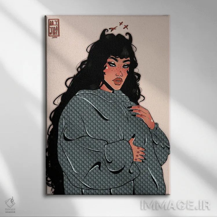 بوم گالری ایماژ طوری طراحی شده که اثر روی دیوار «پرداختشده» و حرفهای دیده شود—نه پرزرقوبرقِ بیپایه؛ بلکه دقیق و خوشپرداخت. بافت ظریف کنواس کمک میکند حس اثر هنری را در نگاه نزدیک نگه میدارد. قابپذیری باعث میشود هماهنگی قاب با پالت رنگ جلوه را تقویت میکند و نتیجه را یکدستتر میکند. حاصل کار، یک تابلو خوشنشین است که هم از دور اثرگذار است و هم از نزدیک خوشخوان؛ در کنار نورپردازی درست، جلوهی گالریوار بیشتری حس میشود.