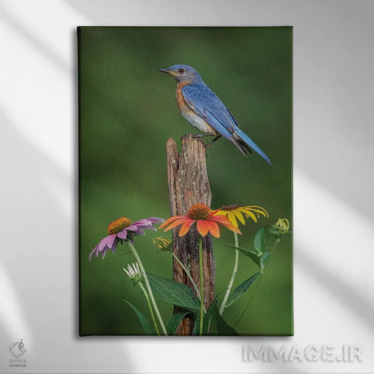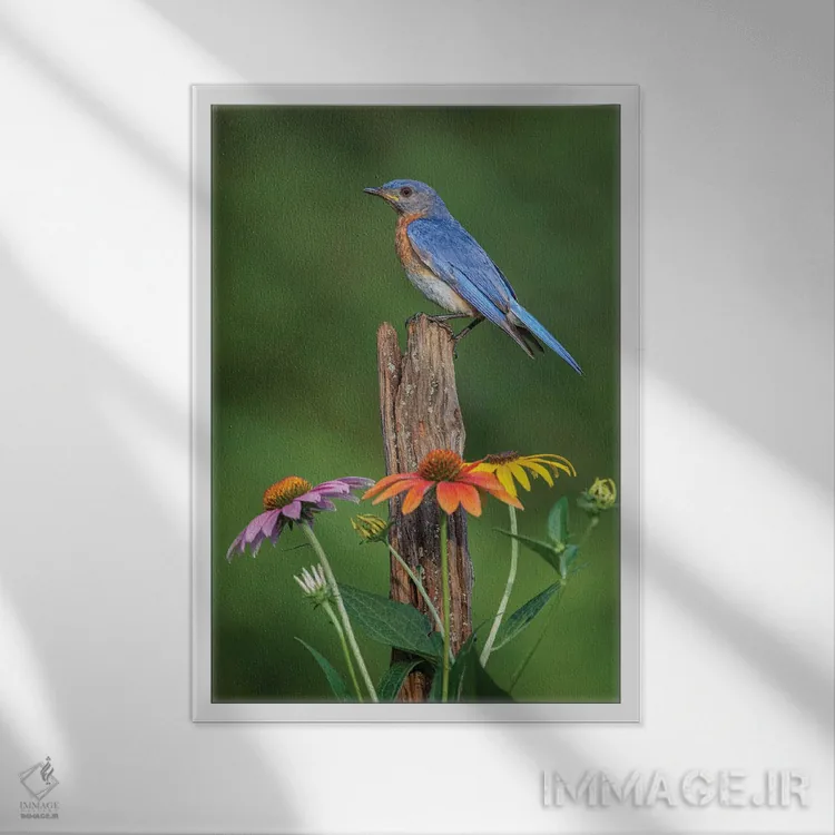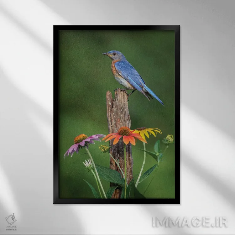 «بلوبرد شرقی نر روی میلهٔ قدیمی حصار با گلهای مخروطی» اثرِ «آدام جونز» از آن کارهاییست که بافت و جزئیات را طوری نشان میدهد که نگاه میماند؛ برای دکورهای مدرن و مینیمال انتخاب خوبیست. در کنار گیاهان و نور طبیعی، جذابتر هم میشود.