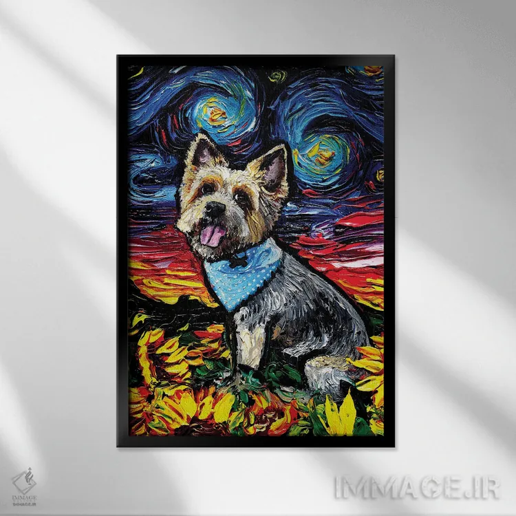 تابلو شب تریِر ابریشمی اثر آجا تریر - نمای قاب‌دار مشکی