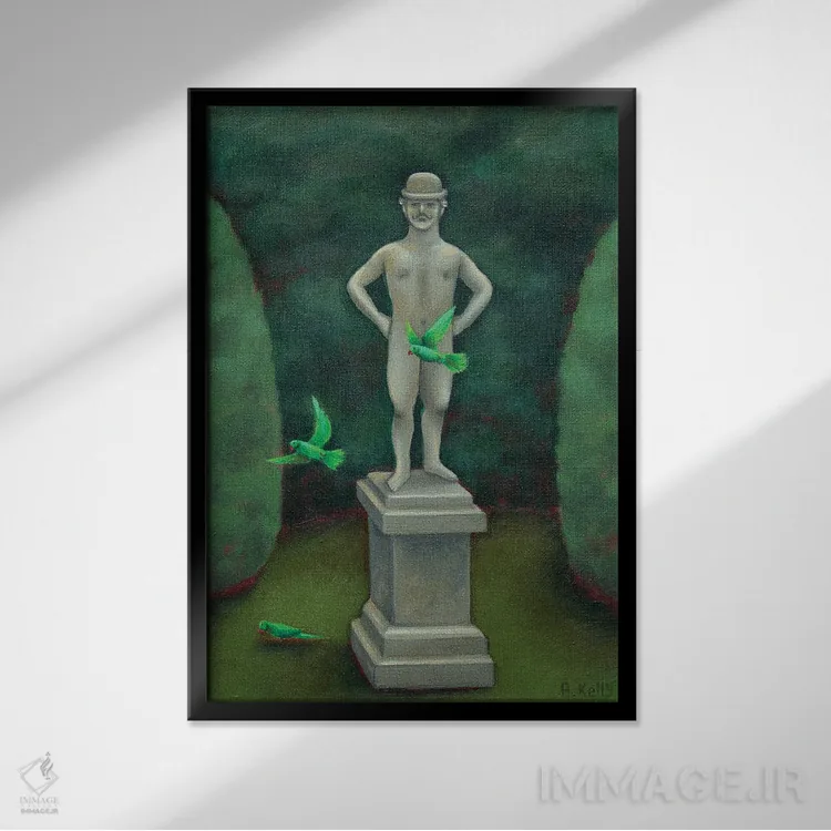 براساس پالت ترکیبی اثر، قاب تیک گرم (چوبی) پیشنهاد اول است و مشکی مات (فریم متوسط) مکمل. برای سفارشهای پروژهای با ابعاد و قابهای اختصاصی با ایماژ در تماس باشید.