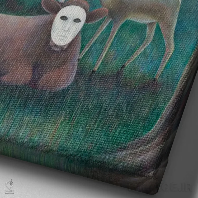 براساس پالت ترکیبی اثر، قاب تیک گرم (چوبی) پیشنهاد اول است و مشکی مات (فریم متوسط) مکمل. برای سفارشهای پروژهای با ابعاد و قابهای اختصاصی با ایماژ در تماس باشید.