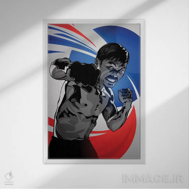 تابلو مانی پاکیائو (بوکسور) اثر نیکیتا آباکوموف - نمای قاب‌دار سفید