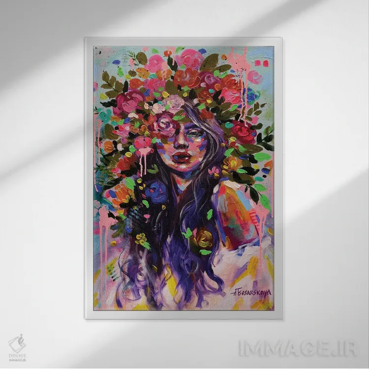 تابلو دختر قدرتمند اوکراینی اثر آلیاکساندرا تسسارسکایا - نمای قاب‌دار سفید
