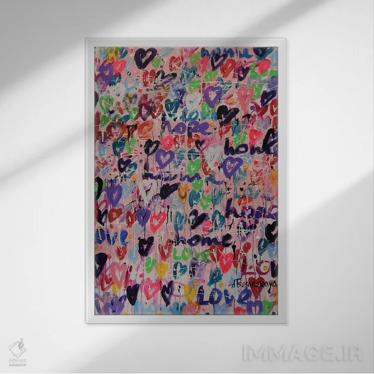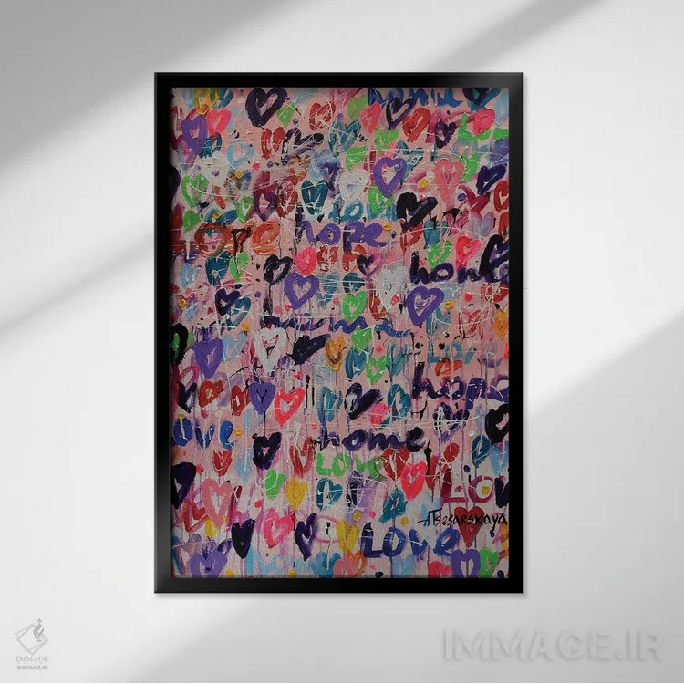 «خانه، عشق، امید» اثرِ «آلیاکساندرا تسسارسکایا» یک قاب تایپوگرافیک است که ریتم فضا را منظم نگه میدارد؛ برای دیوارهای سفید و چیدمانهای ساده، گزینهی خوبی است.